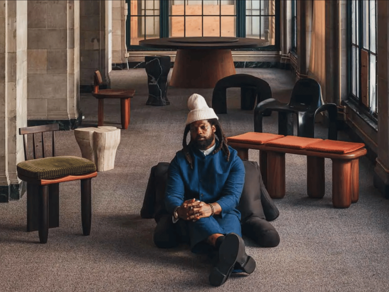 A former NFL legend—Michael Bennett—has retired from football to tackle a new frontier: architecture. Bennett’s design studio—Studio Kër: a powerful platform for his visionary design concepts—launched a furniture collection in an exhibition titled We Gotta Get Back to the Crib—that blends sculptural form with references to Black history and African diasporic design.