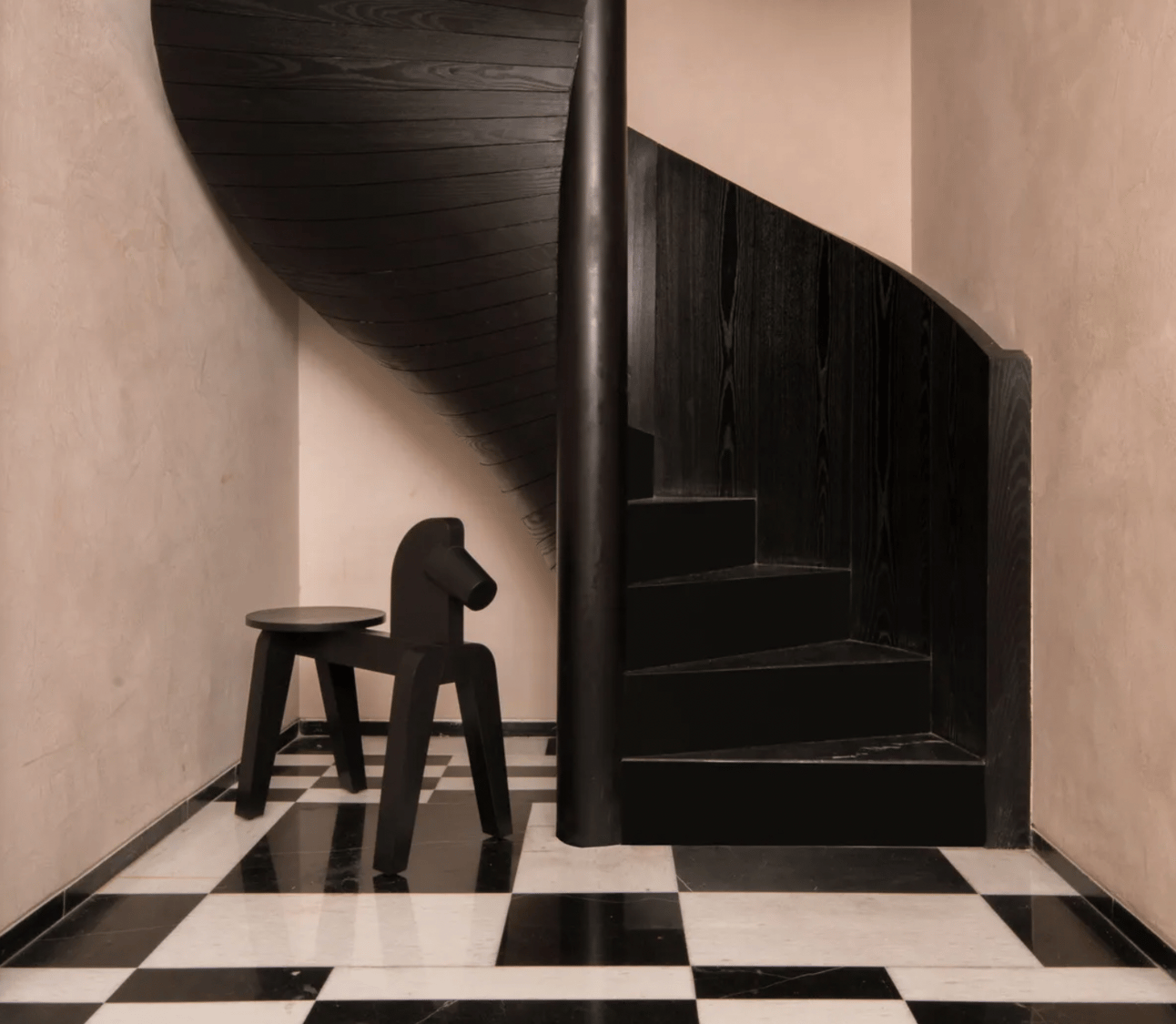 Each corner tells a different story. Upon entering, you’re greeted by a double-height foyer with bold checkerboard marble flooring and an eye-catching black spiral staircase. From the honey-hued Sesann sofa in the living room to the striking green quartzite rock table in the dining area—there’s a cohesive thread of creativity that perfectly ties it all together.