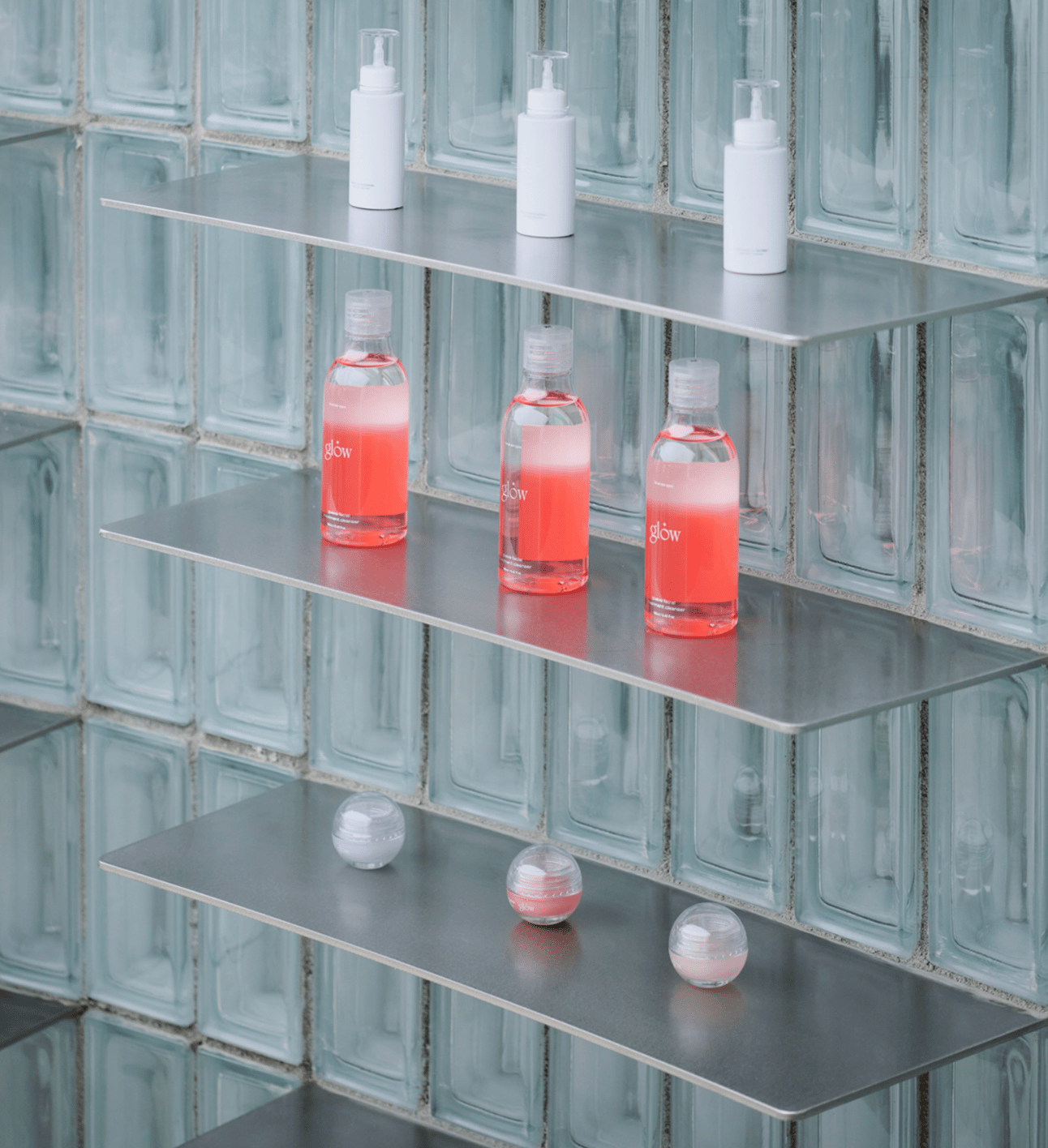 In a narrow alley in Seoul, a cosmetics brand—GLOW—sought to create a showroom that would reflect its core spirit and values of transparency and brilliance. The challenge was clear: how to create a visually appealing experience in a small space.