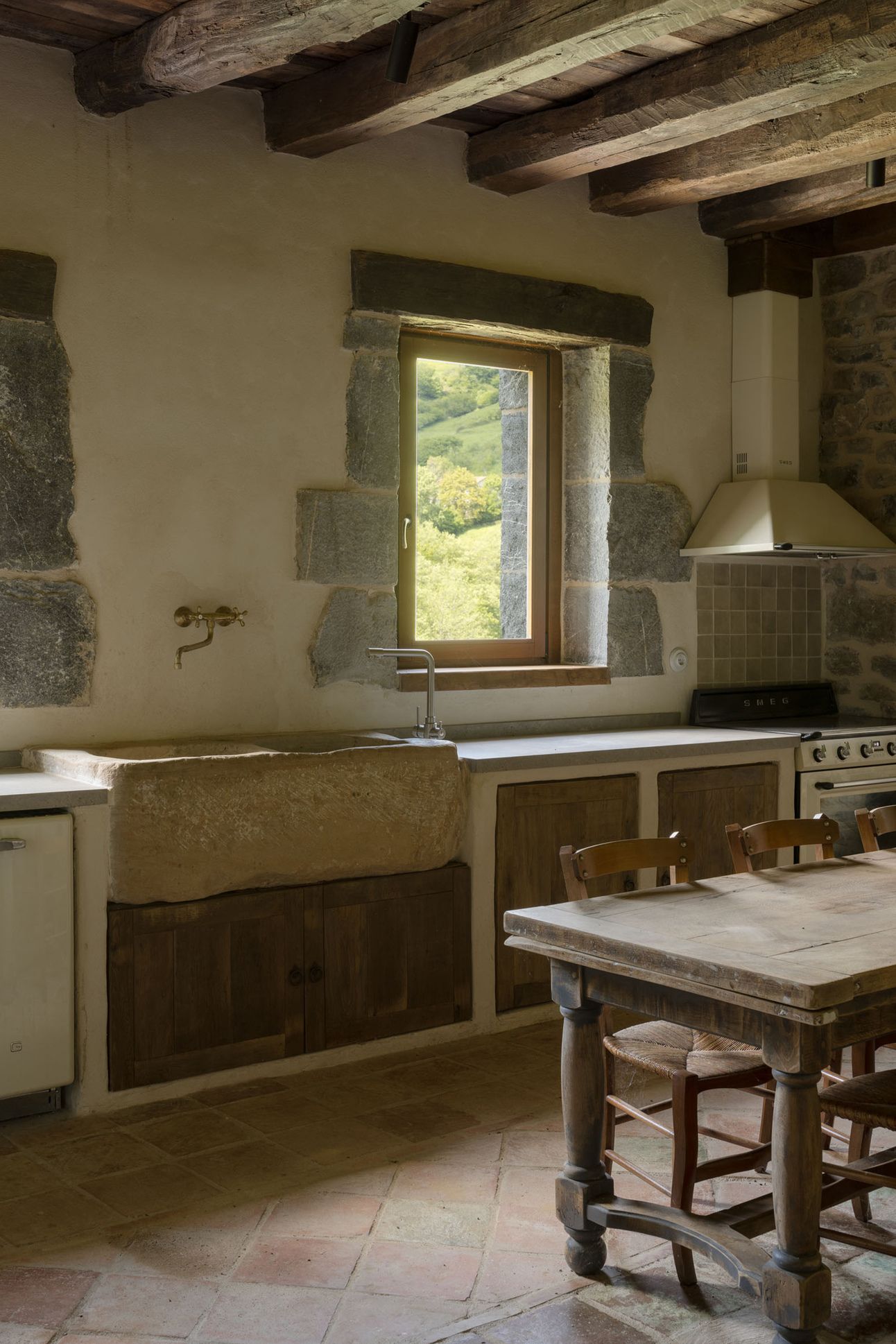 Goenetxe is a place where time stays. The original timber beams and thick stone walls haven’t been polished into erasure—they’ve been kept raw, intact, and visible. You can still see the marks left by tools, by weather, by use. In a world obsessed with newness, this home offers continuity. It reminds us that what lasts matters.