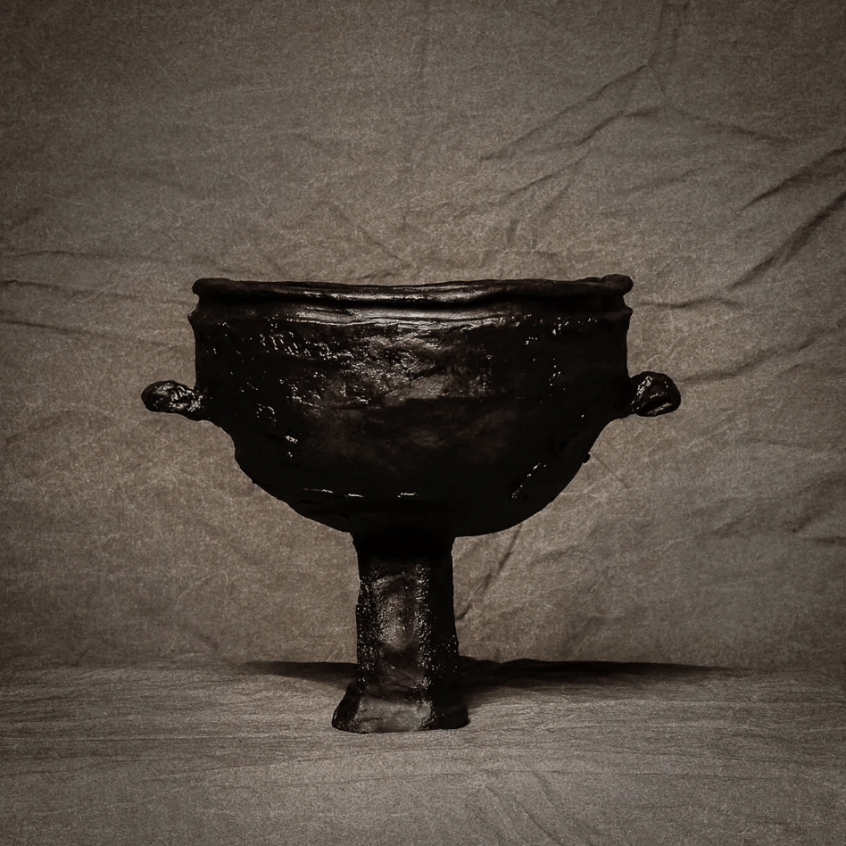 Nautical references and hair-like textures surface quietly, tied to memory rather than symbol, while soft pinks and charred blacks register emotion through color and heat. Classical vessel forms appear only in outline, distorted and thickened until they feel bodily and present. These pieces hold a sense of endurance: shaped slowly, altered by pressure and fire, and confident in their refusal to be polished or resolved.